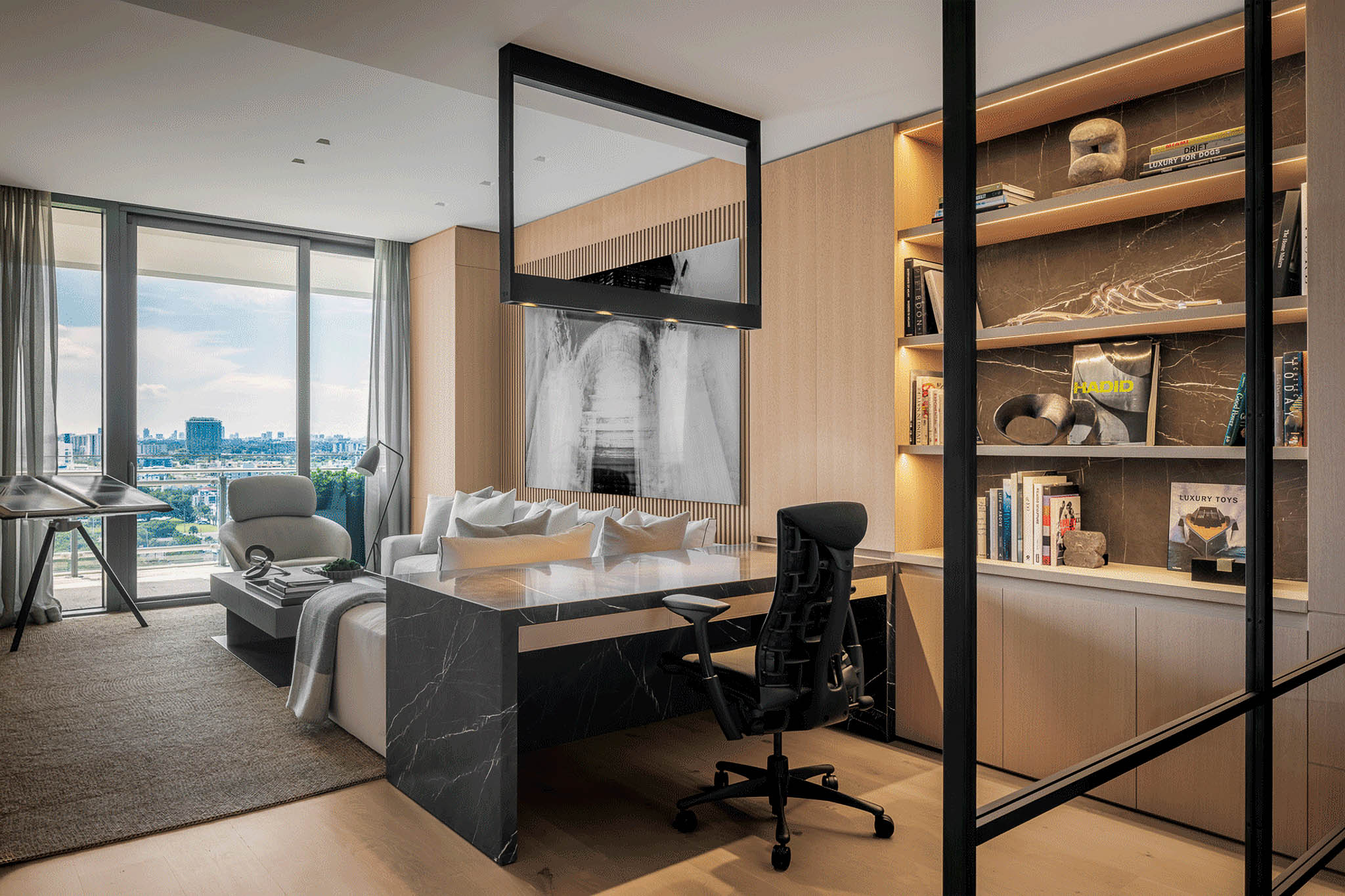 Led by the vision of Sam Robin Design, this residence has been carefully redefined to meet the needs of a new generation while maintaining a strong connection to its past. Set within Renzo Piano’s Eighty Seven Park, the design evolves toward a contemporary language, expressed through light, material clarity, and spatial openness.