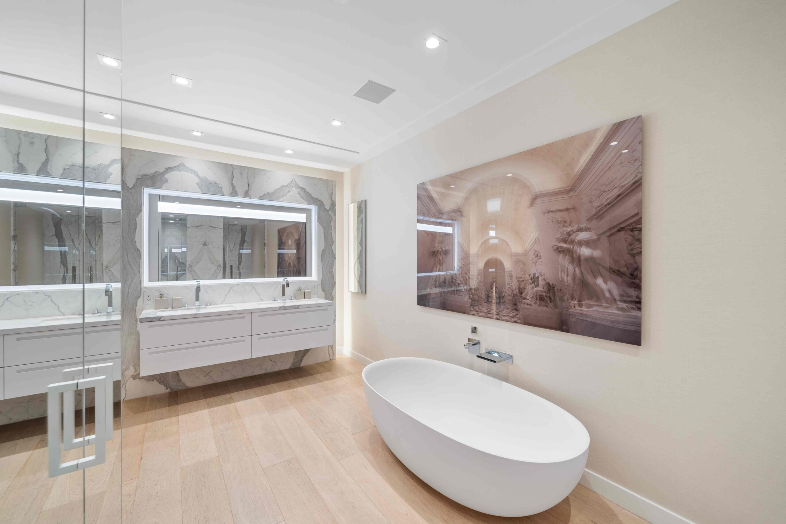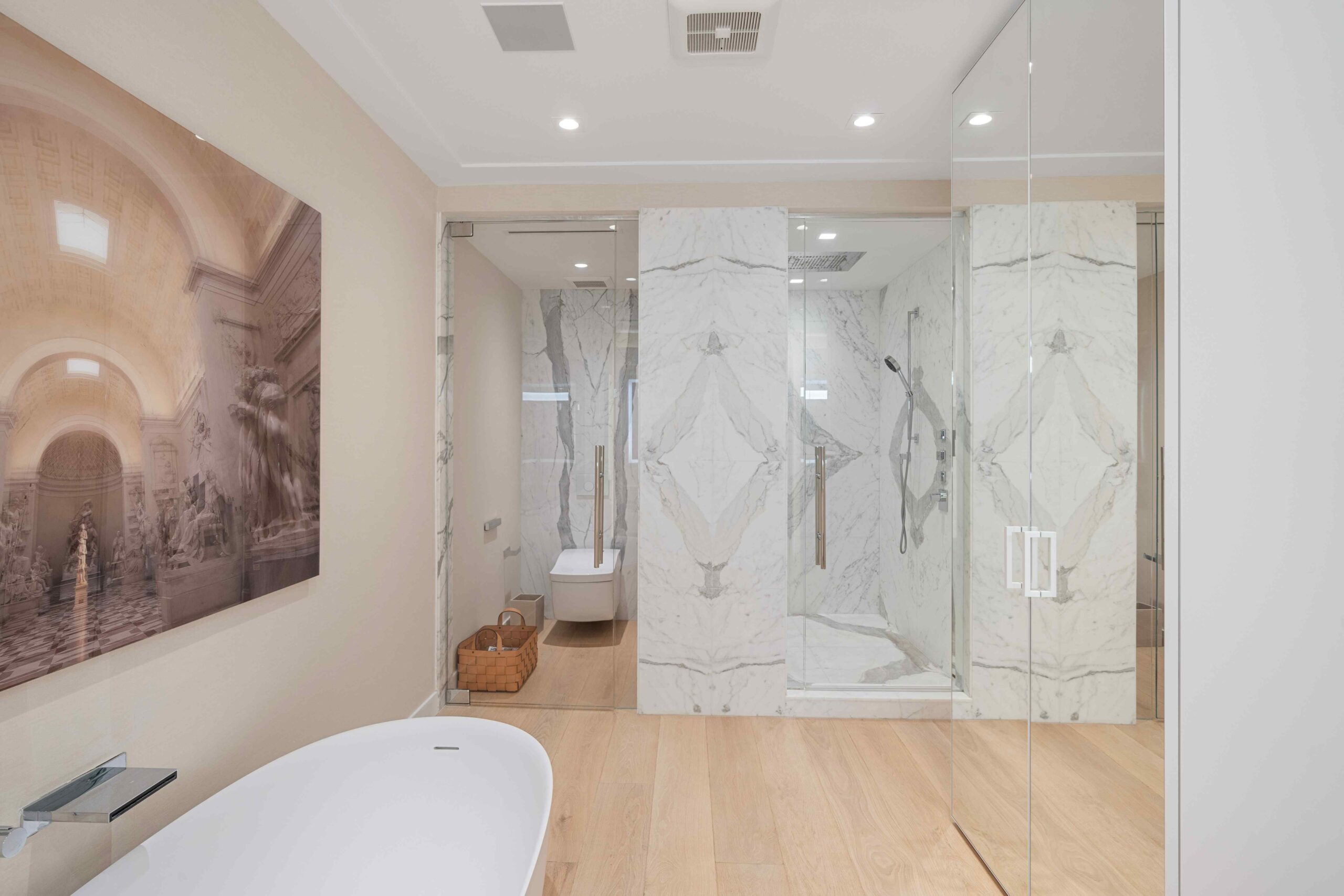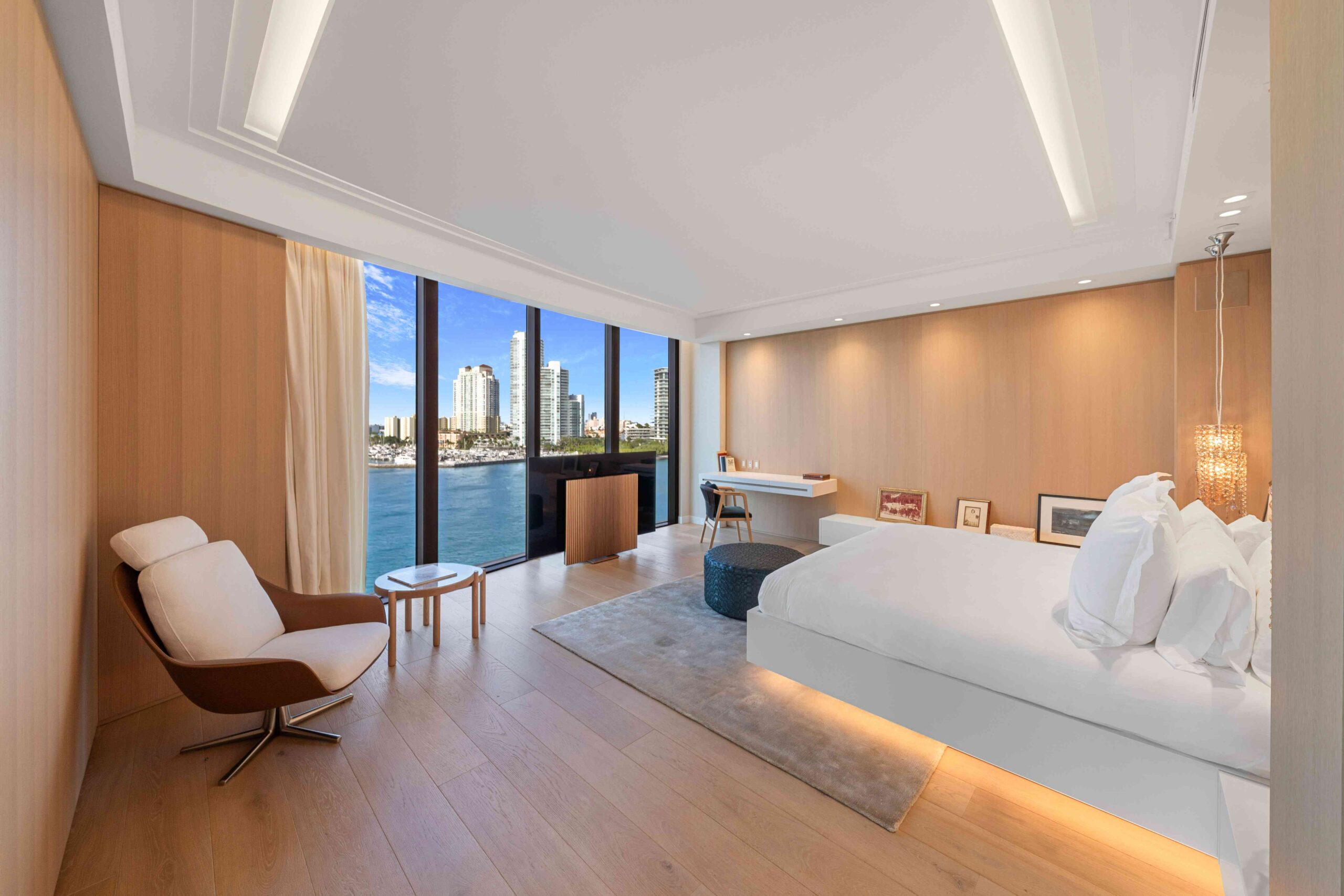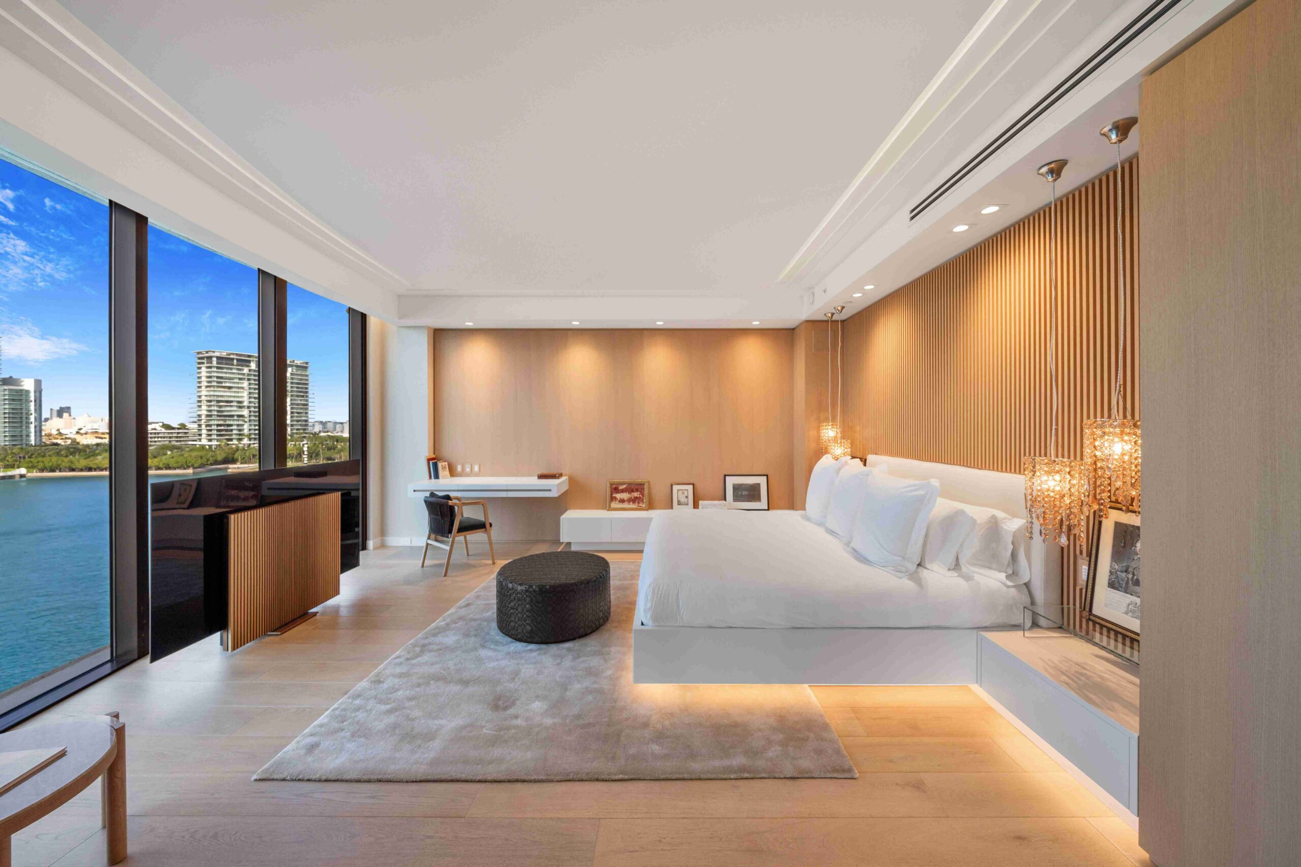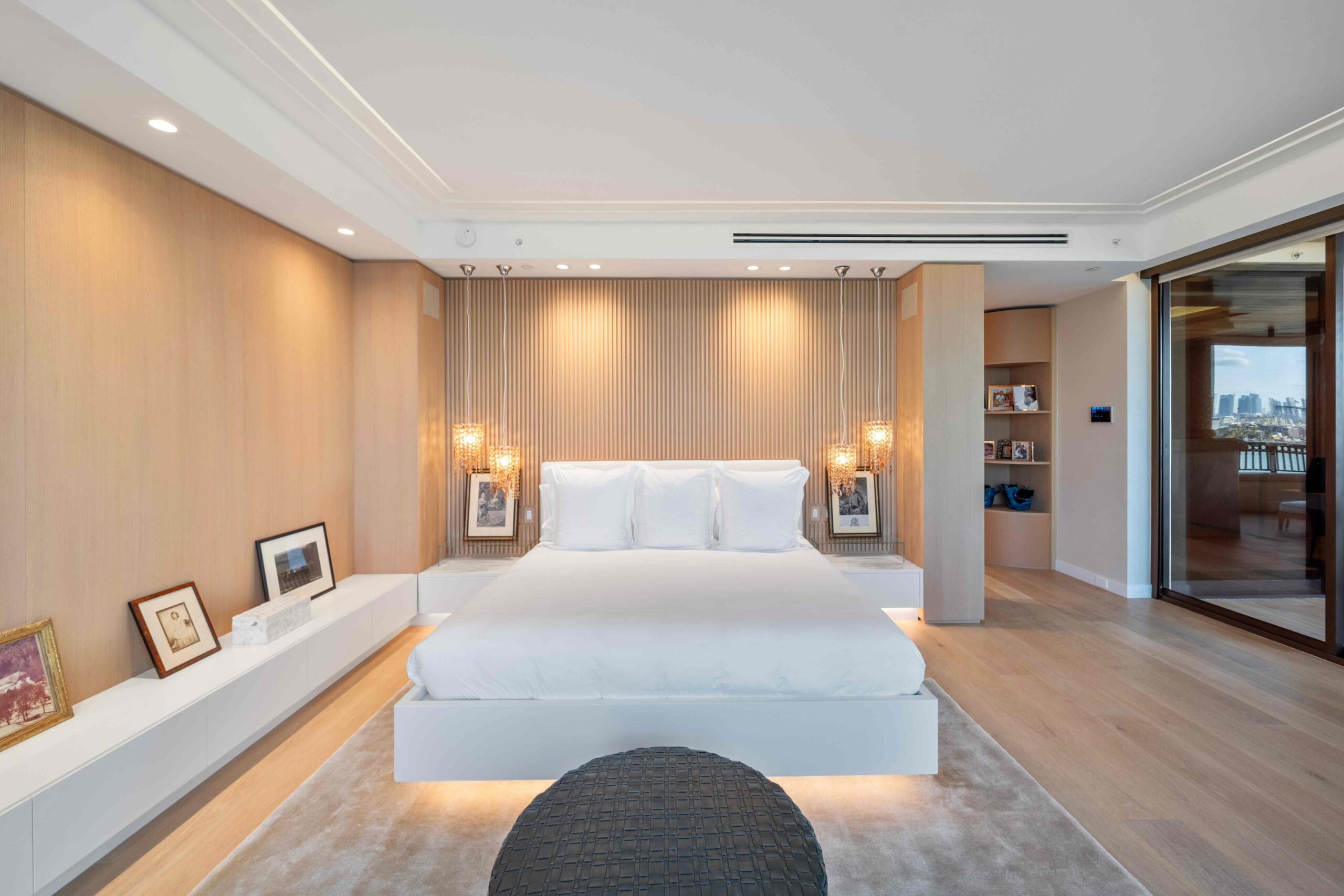 Wood defines the heart of Panoramic Penthouse, introducing warmth and tactility throughout the interiors. Floors, walls, and bespoke furniture are thoughtfully crafted to create a seamless and inviting atmosphere, balancing contemporary lines with a human touch.