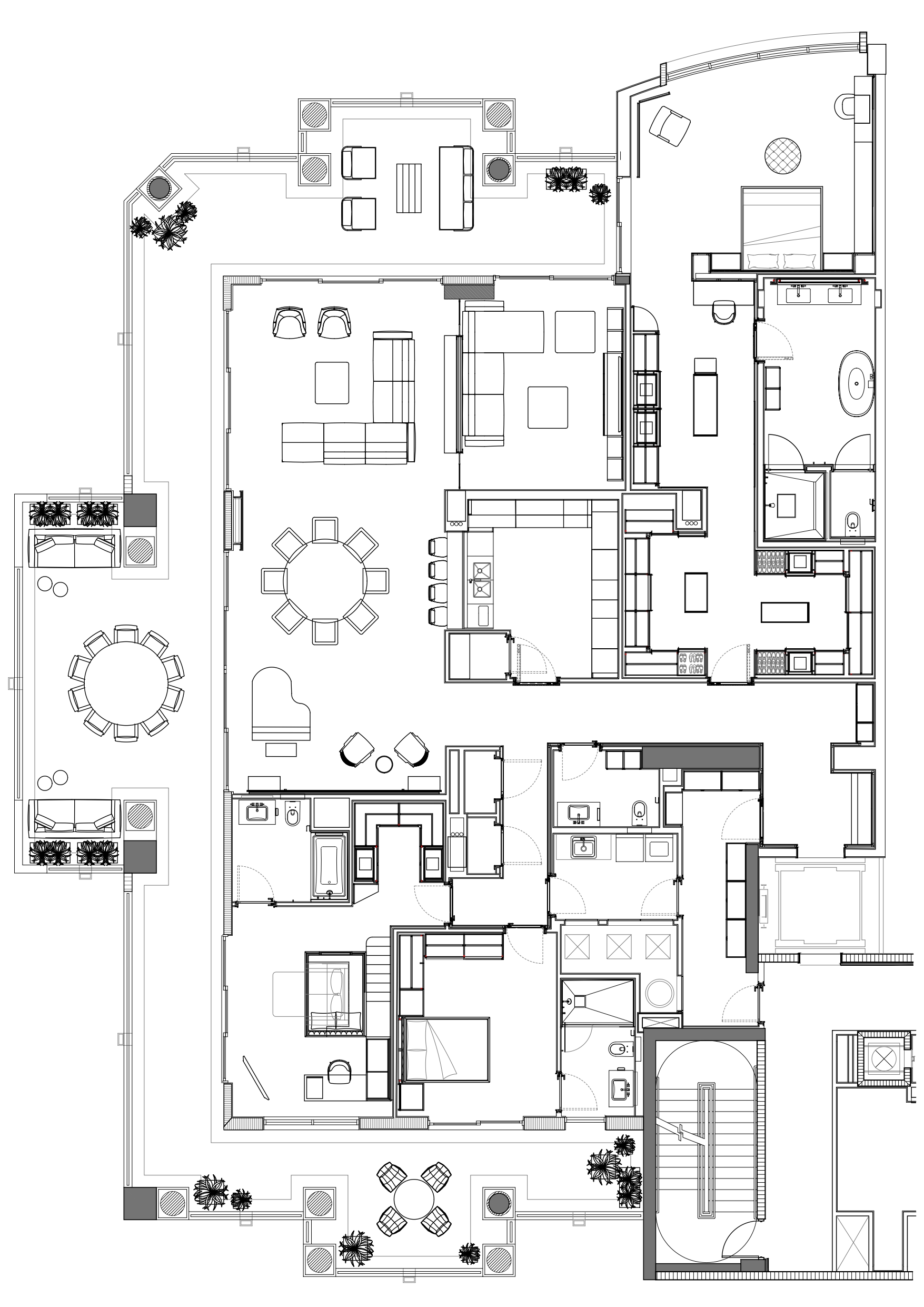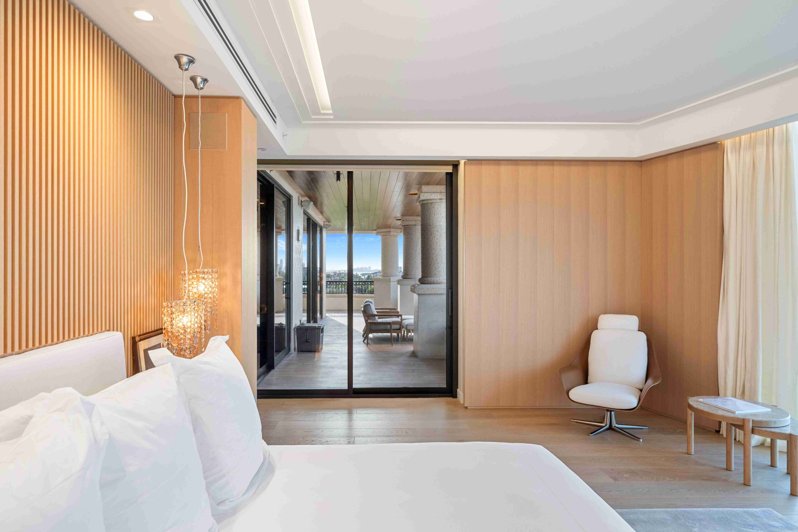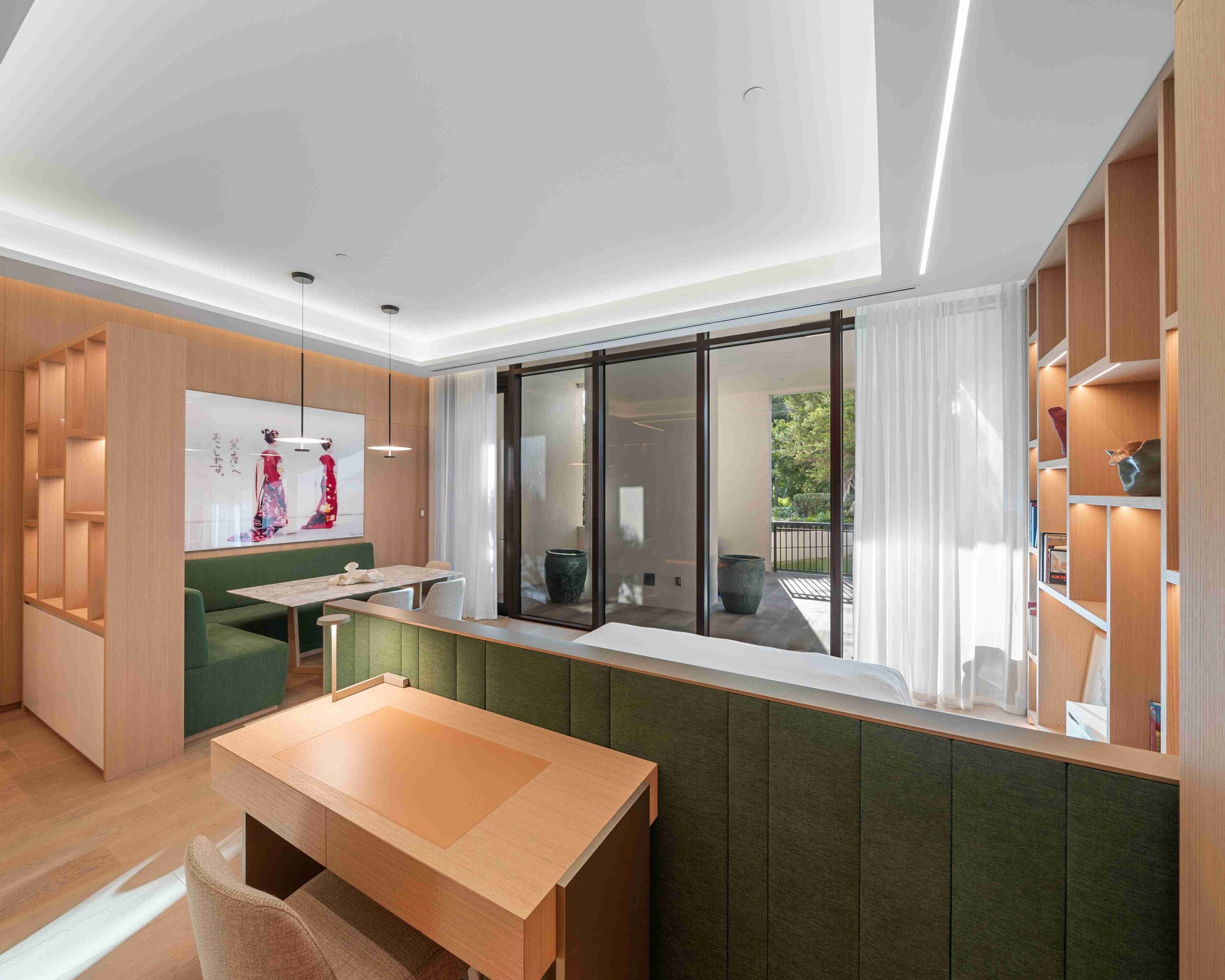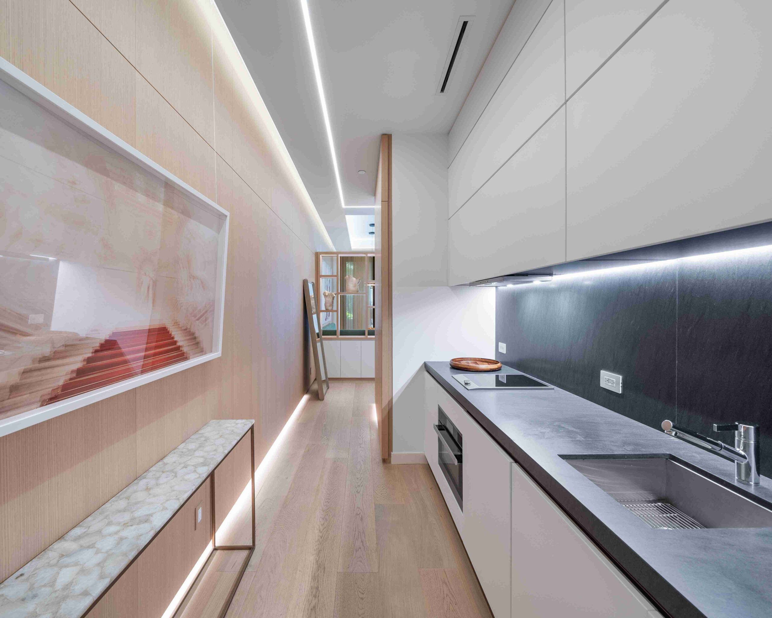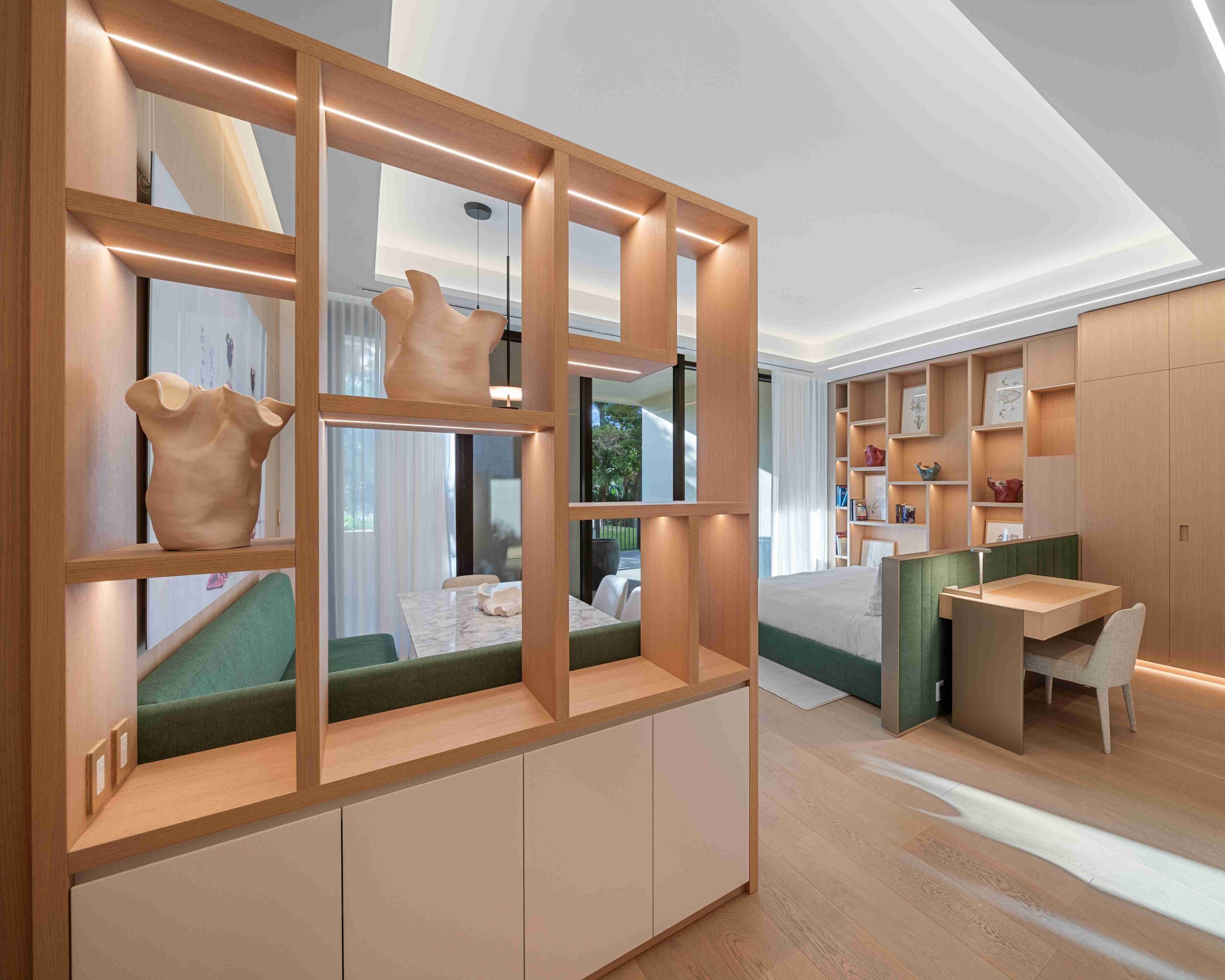 The extensive use of wood ties together every space, from the living areas to the terrace connection. Each element is custom-designed, emphasizing natural textures and tones that enhance comfort, elegance, and the sense of a cohesive, lived-in home.